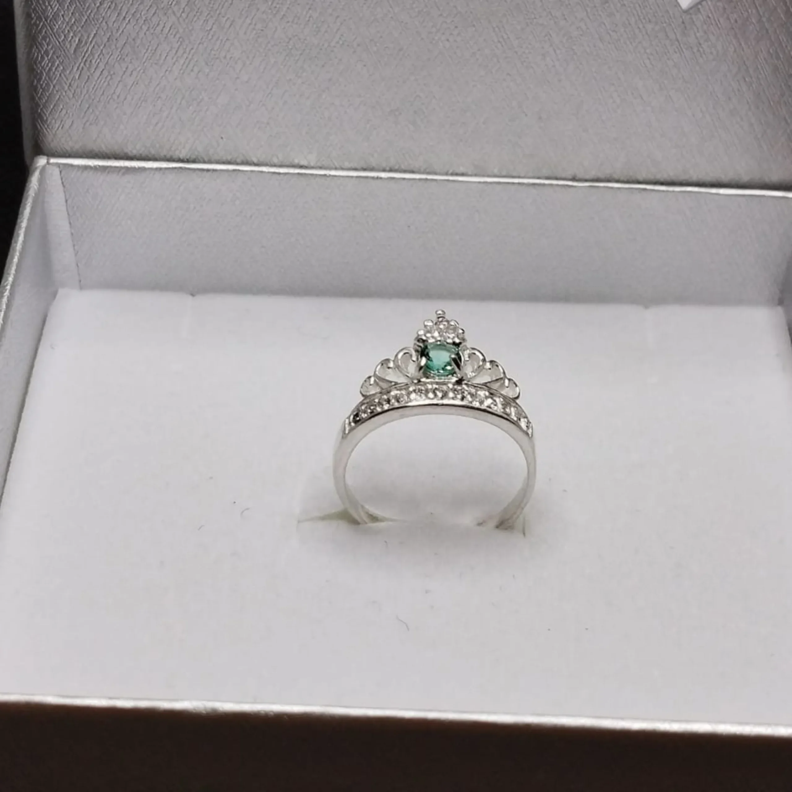 Lindo anel em prata pura 925 com uma pedra no tamanho 4mm zircônia original verde e 14 Pedras no tamanho de 1.5mm zircônia branca original